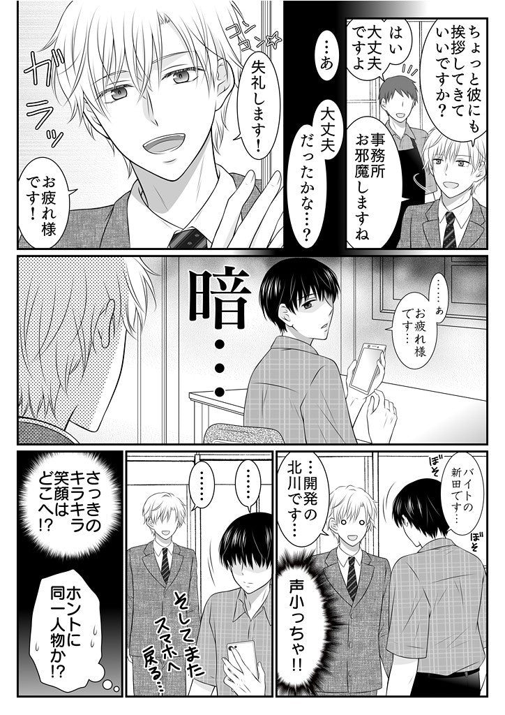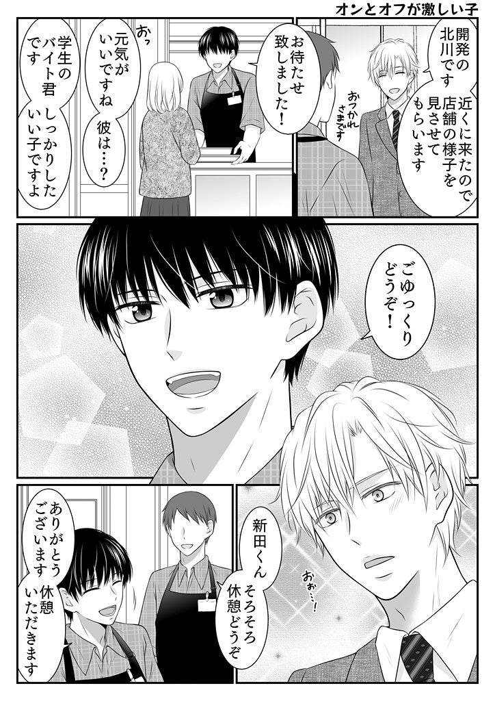 そんなオンとオフでの性格の差が激しい新田と、バイト先のメニュー開発担当の北川との恋愛コメディです。
