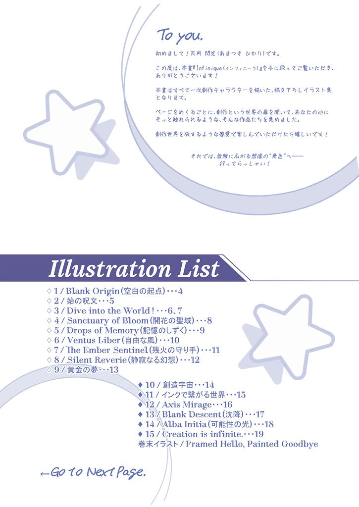 ページをめくるごとに、創作という世界の扉を開いて、あなたの心にそっと触れられるような、無限に広がる想像の景色をご覧ください。