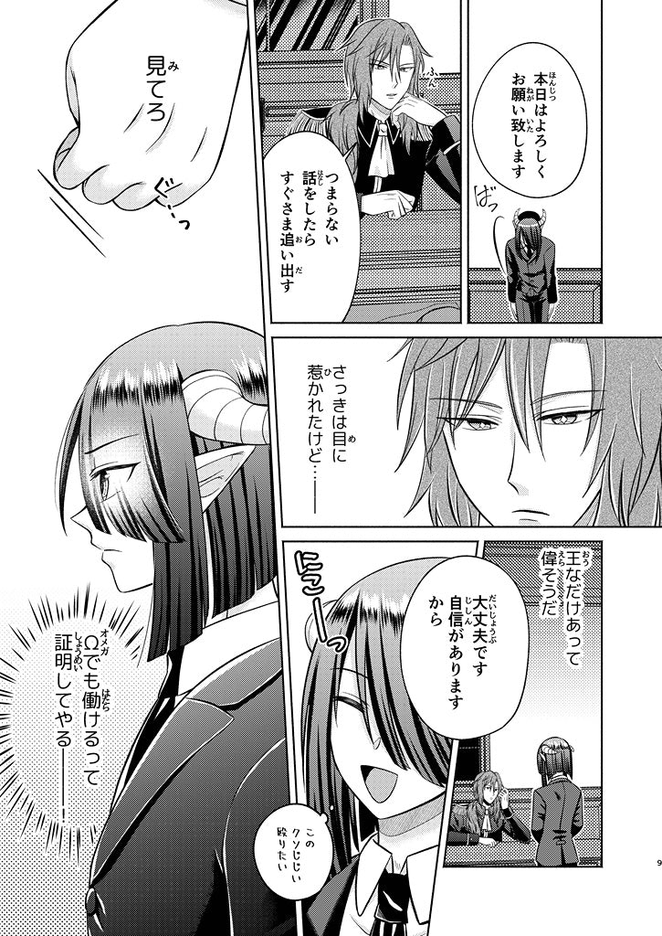 Ωだが、お金のためにαだと偽り魔王の夜伽係に応募したララムントは魔王の弱みを握ってしまう。給料倍の言葉に惹かれ、ララムントは魔王ヴェールハイドの夜伽係として暮らしていくが…。全56ページ