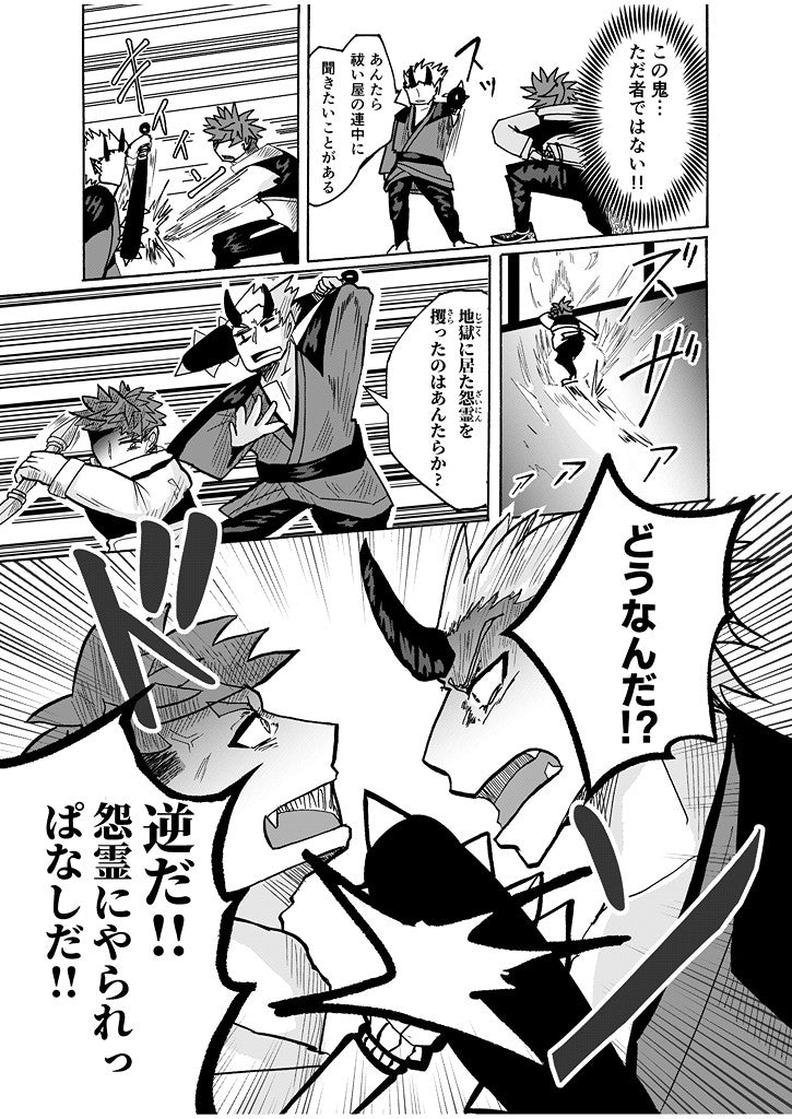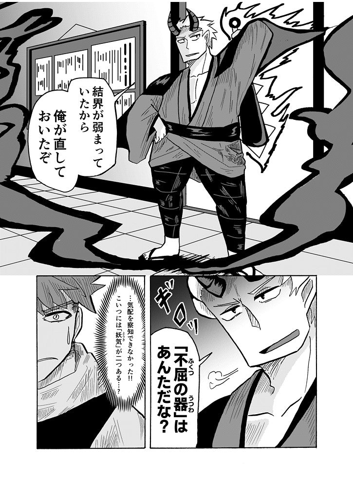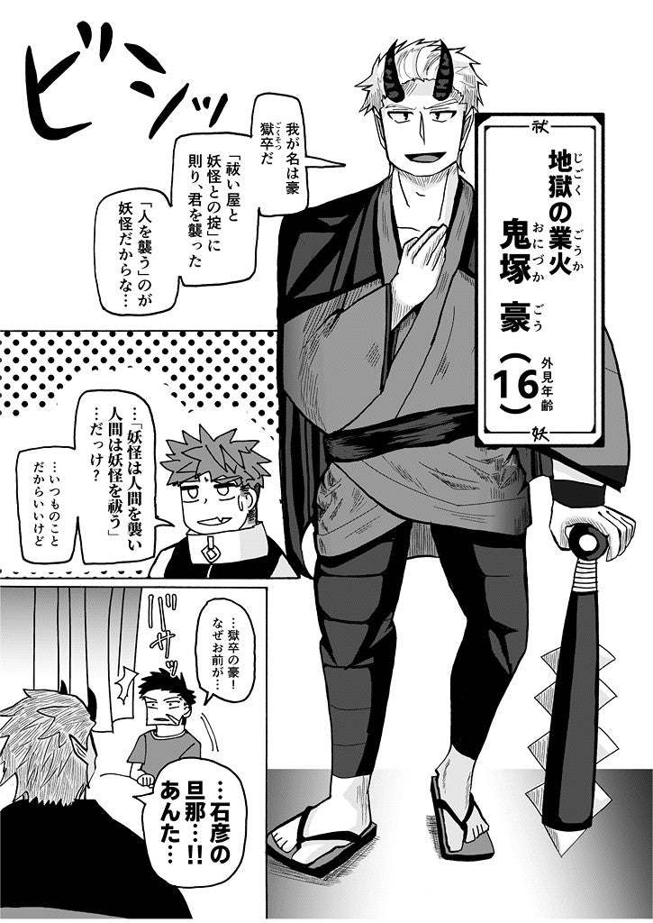 不死身のごとき肉体を持つ、「不屈の器」こと祓い屋の青年・金剛 琥珀(こんごう こはく)と、 罪人を戒める地獄の「業火」を操る、地獄の鬼こと鬼塚 豪(おにづか ごう)がタッグを組む 人×人外バディものの妖怪バトル漫画、第1弾!