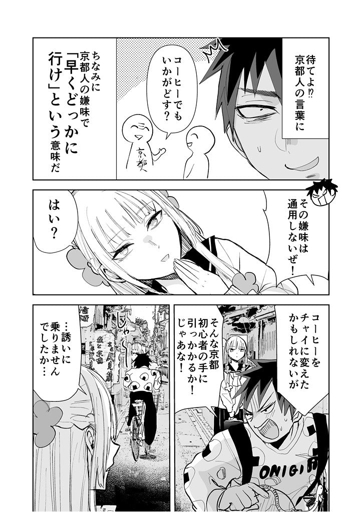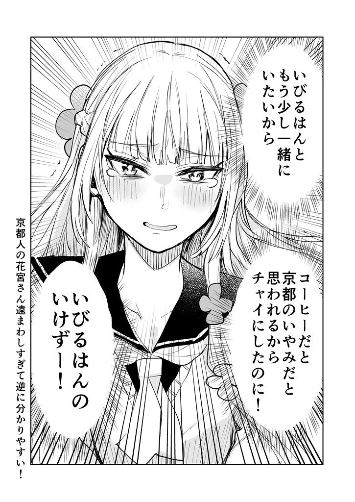 京都出身の花宮さんは隣の席の女子。いびるは京都人である花宮さんの話すことがすべて、嫌味に聞こえており花宮さんは「ずっと嫌味を言ってるわけじゃない」といびるに言ってお土産を渡すも…